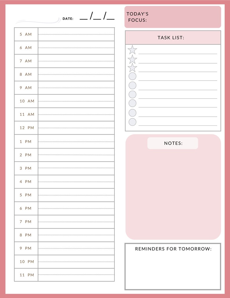 Hourly Daily Planner Etsy