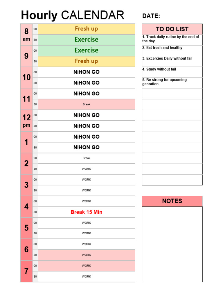 Hourly calendars in Microsoft Excel format 20 templates