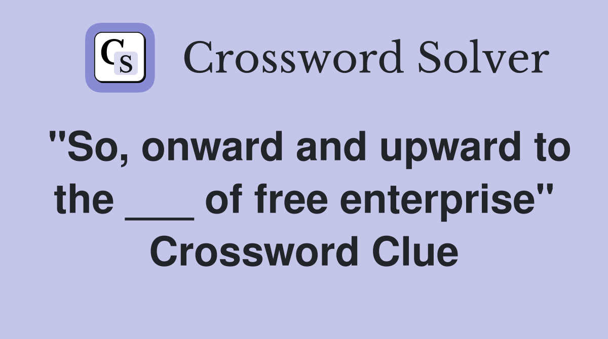 quot So onward and upward to the of free enterprise quot Crossword Clue