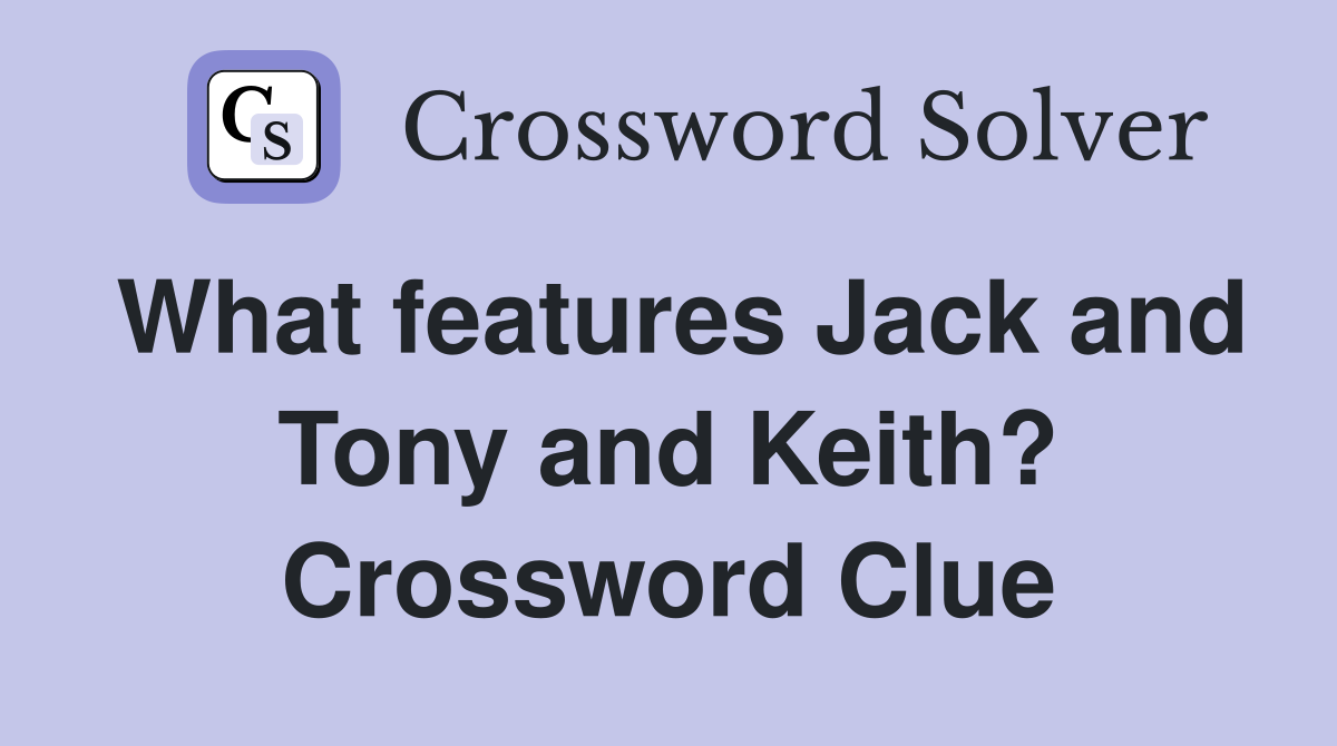 What features Jack and Tony and Keith? Crossword Clue Answers
