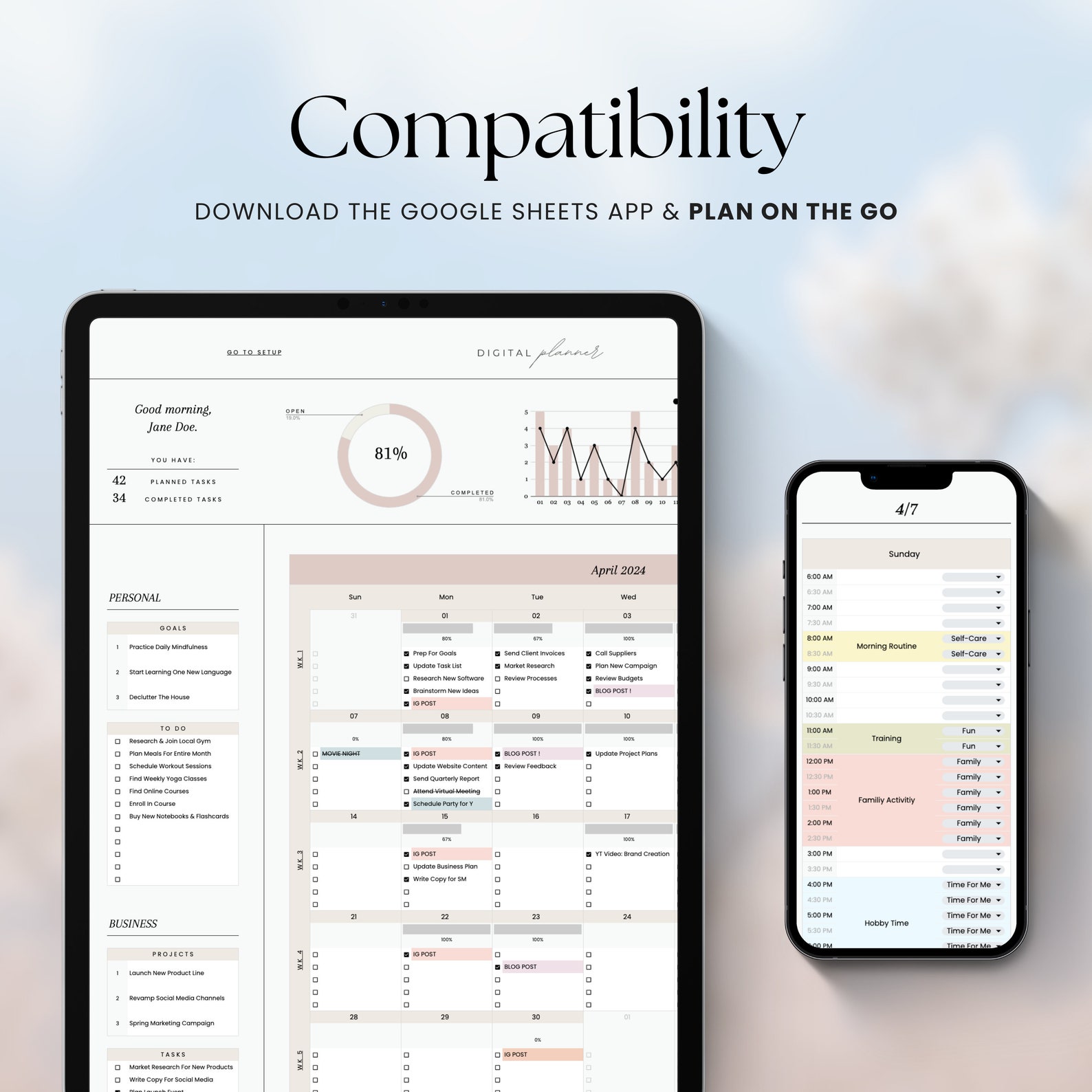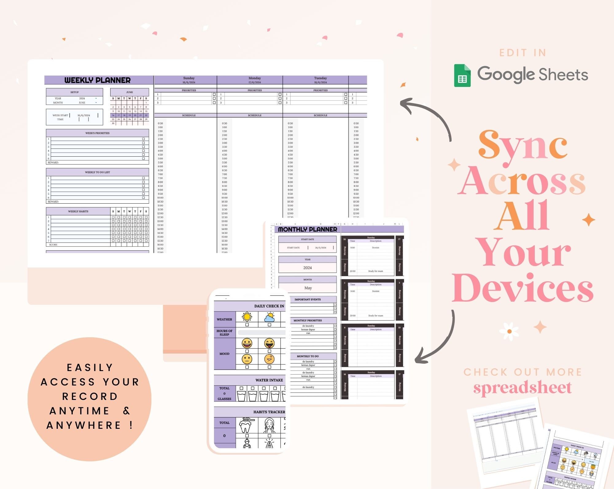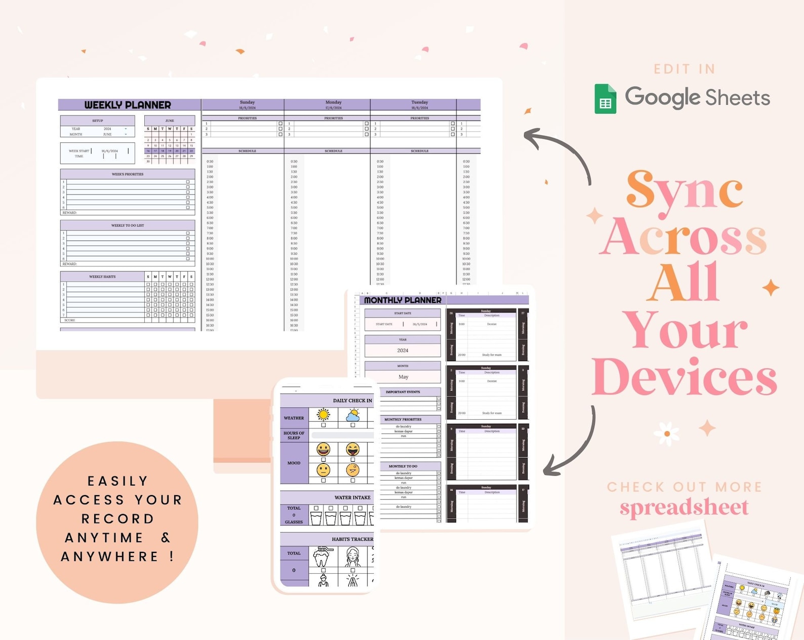Digital Planner Spreadsheet for Google Sheets Custom Daily Agenda