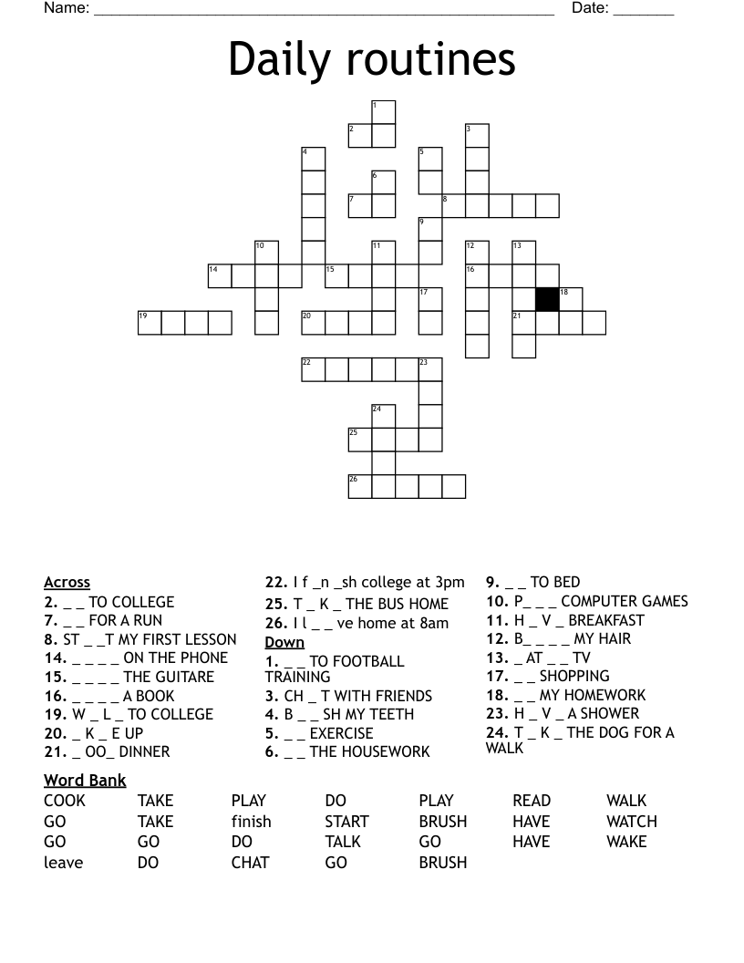 Routines Daily Activities Crossword Puzzle Teaching R vrogue co