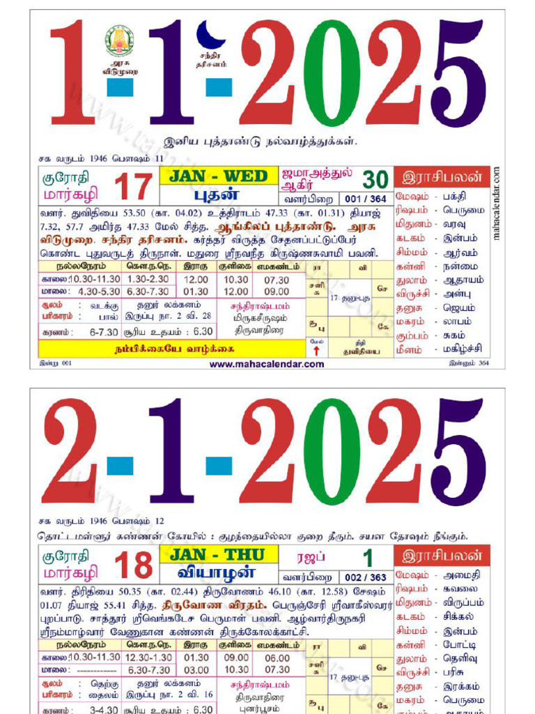 Tamil Calendar 2025 Daily Monthly தமிழ் காலண்டர் 2025