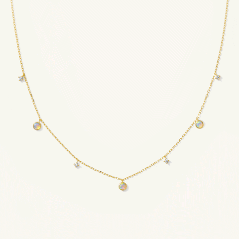 Opal Diamond Station Necklace Reversible Simple Dainty
