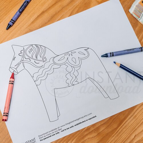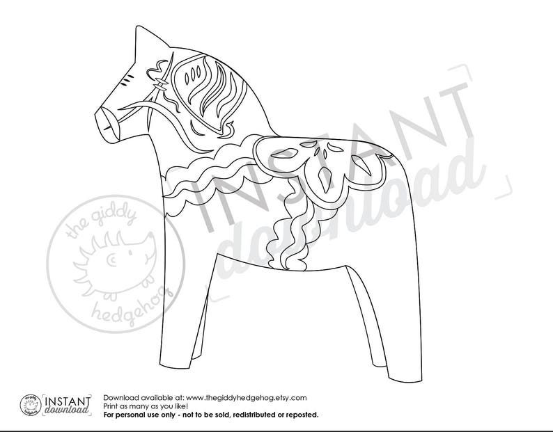 DIY Printable Dala Horse Coloring Book Page Craft Illustration Etsy