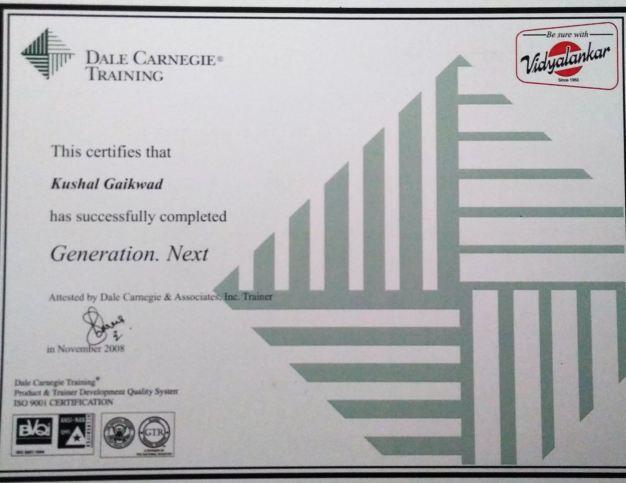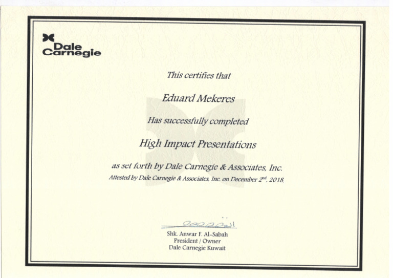 Dale Carnegie Certificate