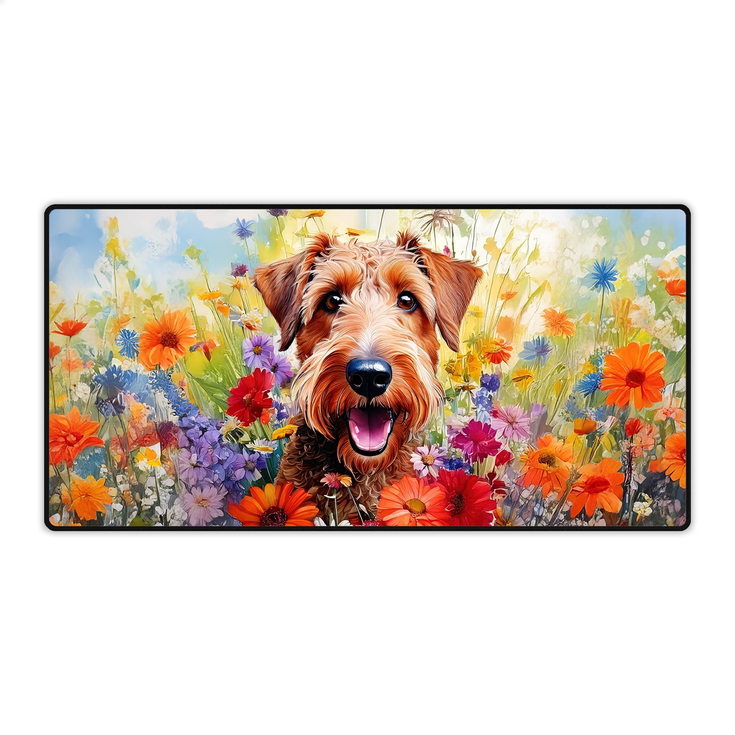 Welcome Spring Summer Airedale Terrier Portrait Flower Blue Sky Desk