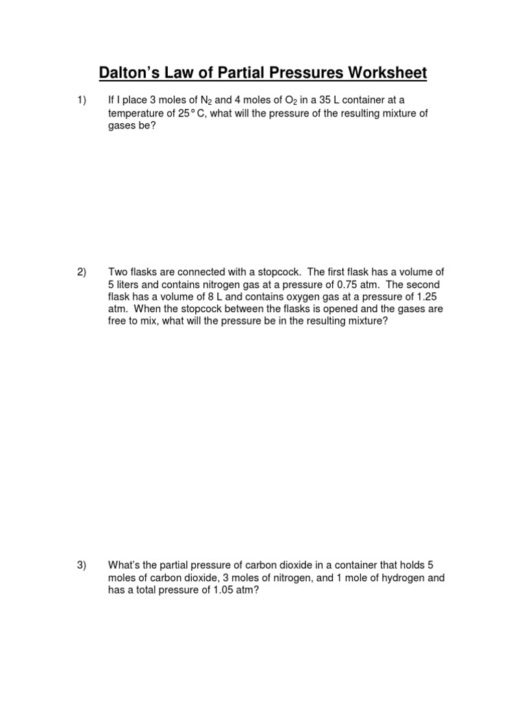 Daltons Law Worksheet Printable And Enjoyable Learning