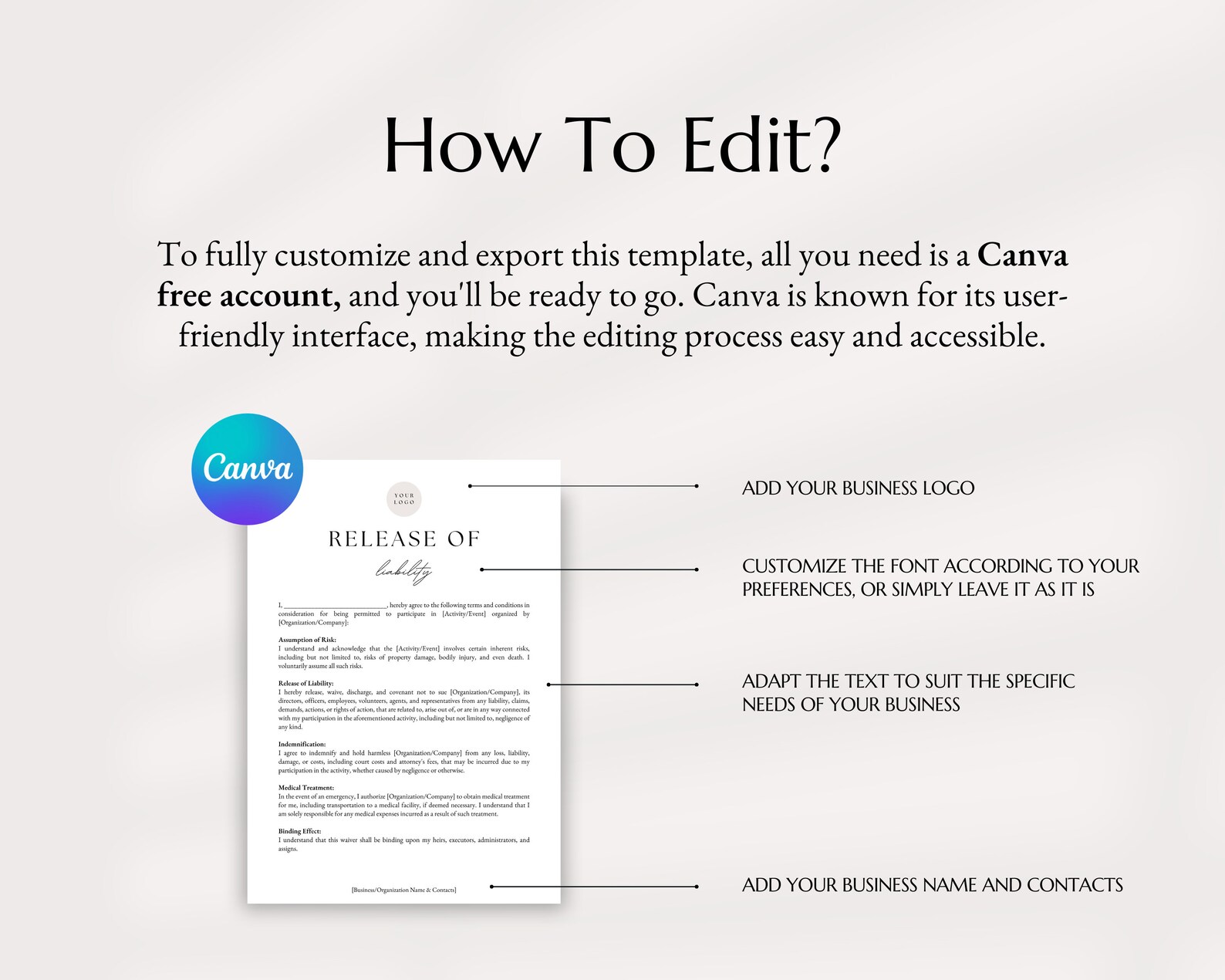 Waiver Template Liability Form Agreement Liability Damage Waiver