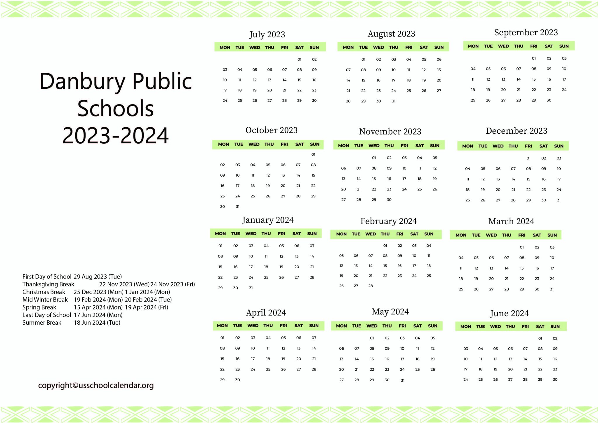 Danbury Public Schools Calendar US School Calendar