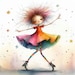 Little Girl Dancing Cute Cartoon Watercolor Illustration Stock