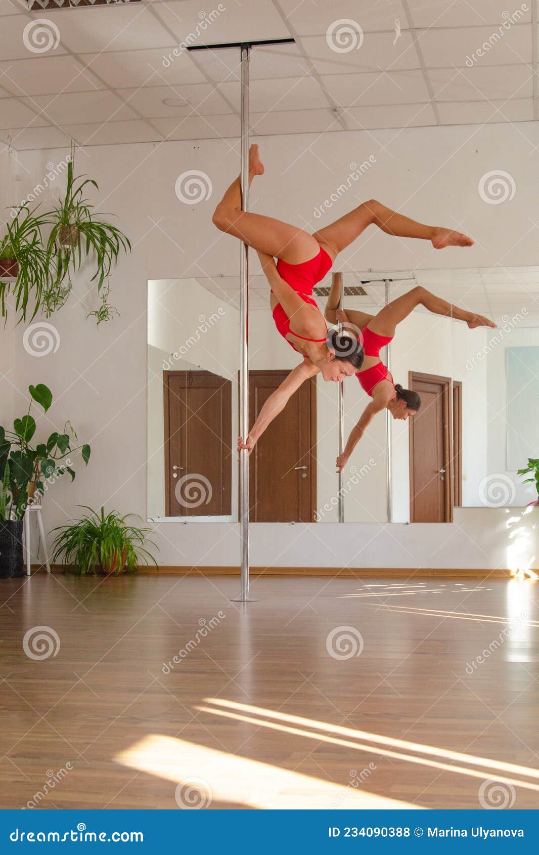 A Girl Dances on a Pole and Performs Acrobatic Stock Photo Image of