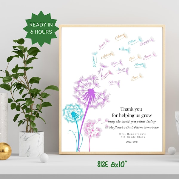 Editable fingerprint dandelion template class teachers gift Etsy de
