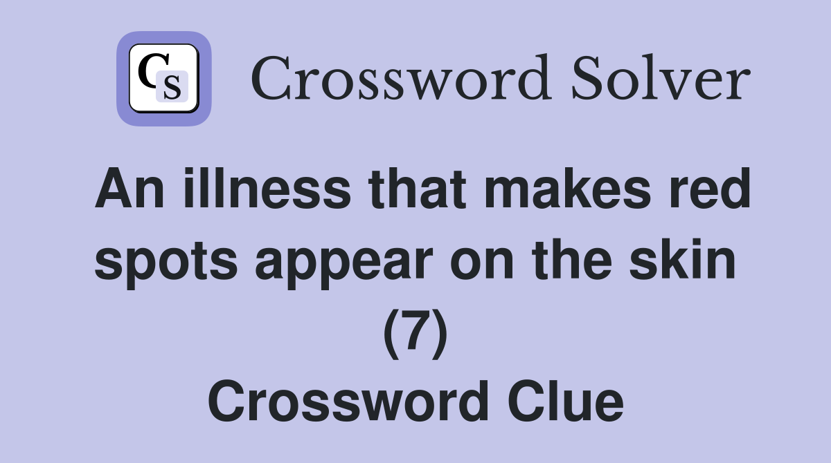 An illness that makes red spots appear on the skin (7) Crossword Clue