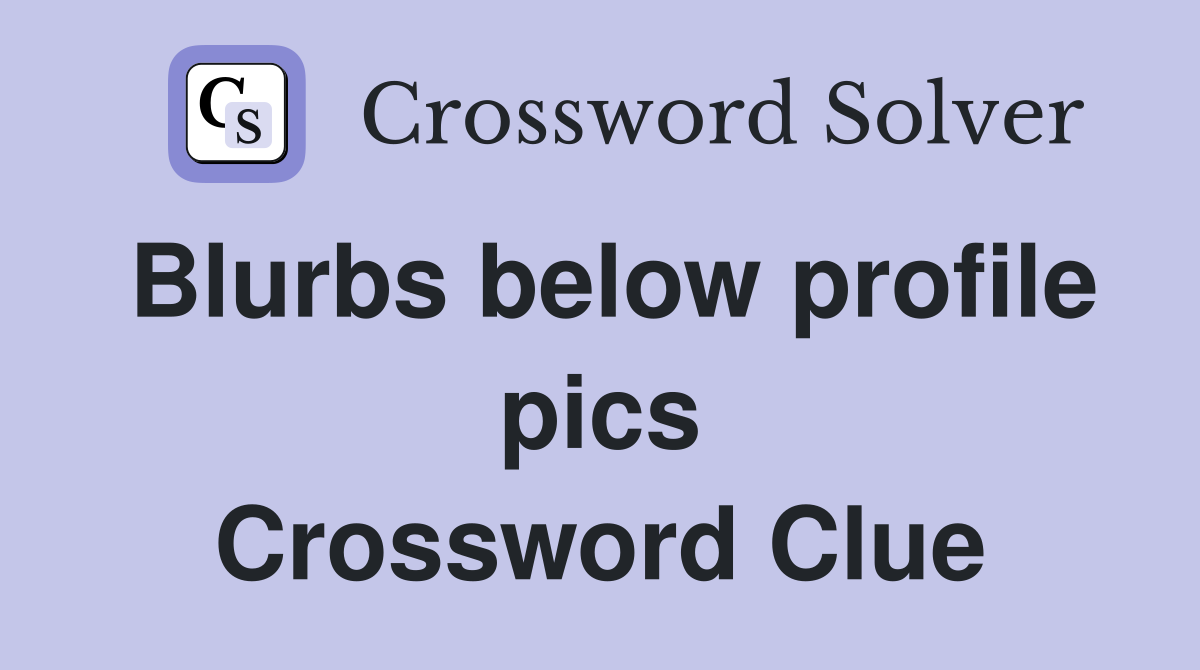 Blurbs below profile pics Crossword Clue Answers Crossword Solver
