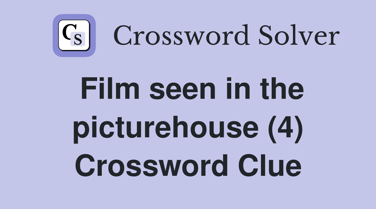 Film seen in the picturehouse (4) Crossword Clue Answers Crossword