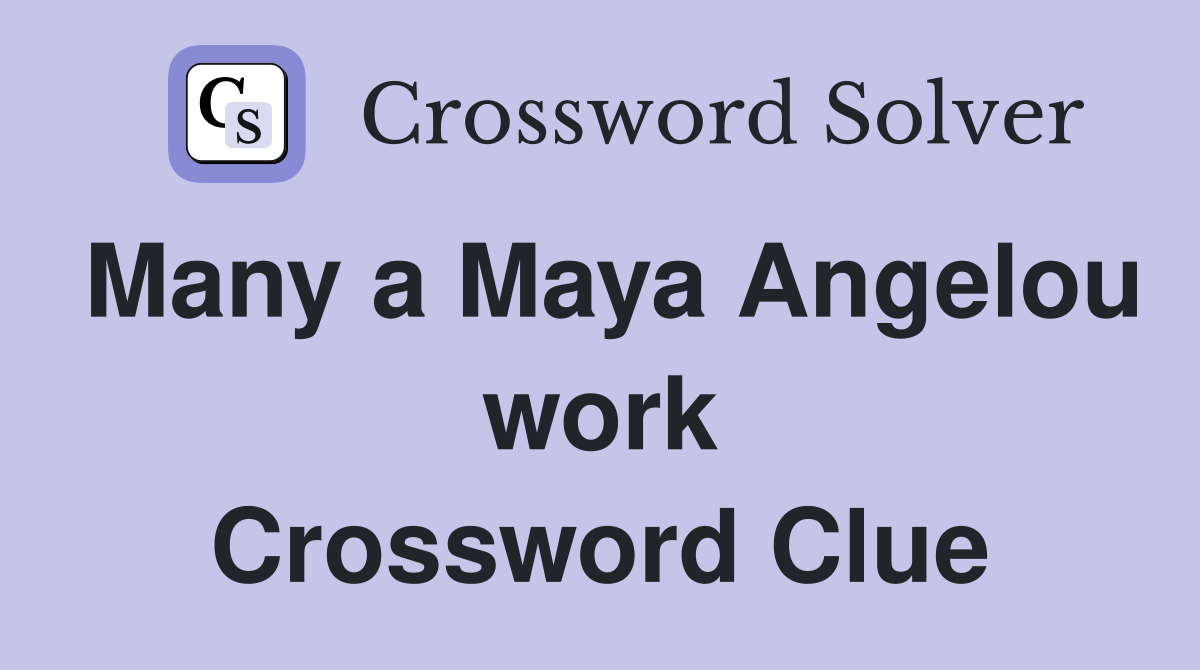 Many a Maya Angelou work Crossword Clue Answers Crossword Solver