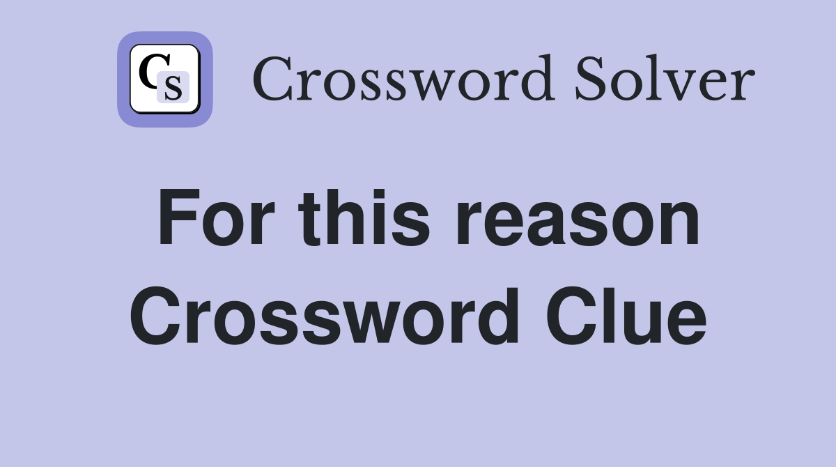 For this reason Crossword Clue Answers Crossword Solver