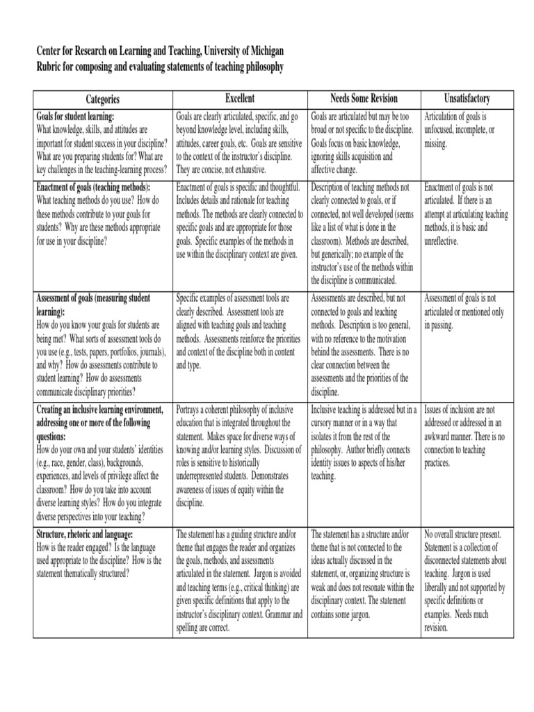 7 CRLT Teaching Philosophy Rubric PDF Teaching Method Learning