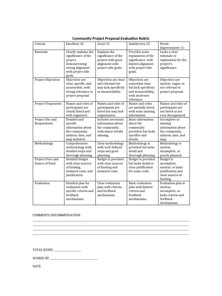 Community Project Proposal Evaluation Rubric PDF Evaluation