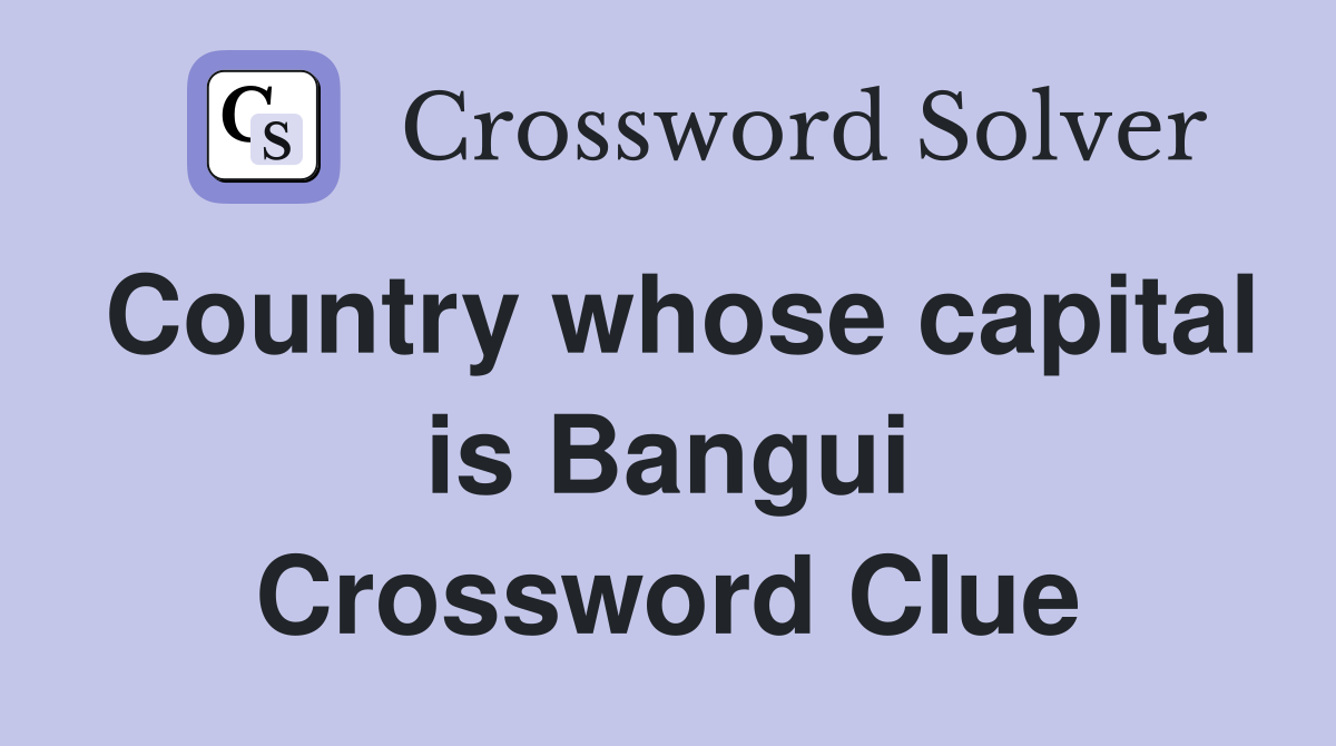 Country whose capital is Bangui Crossword Clue Answers Crossword Solver