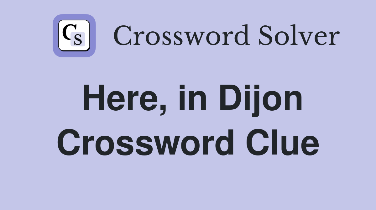 Here in Dijon Crossword Clue Answers Crossword Solver