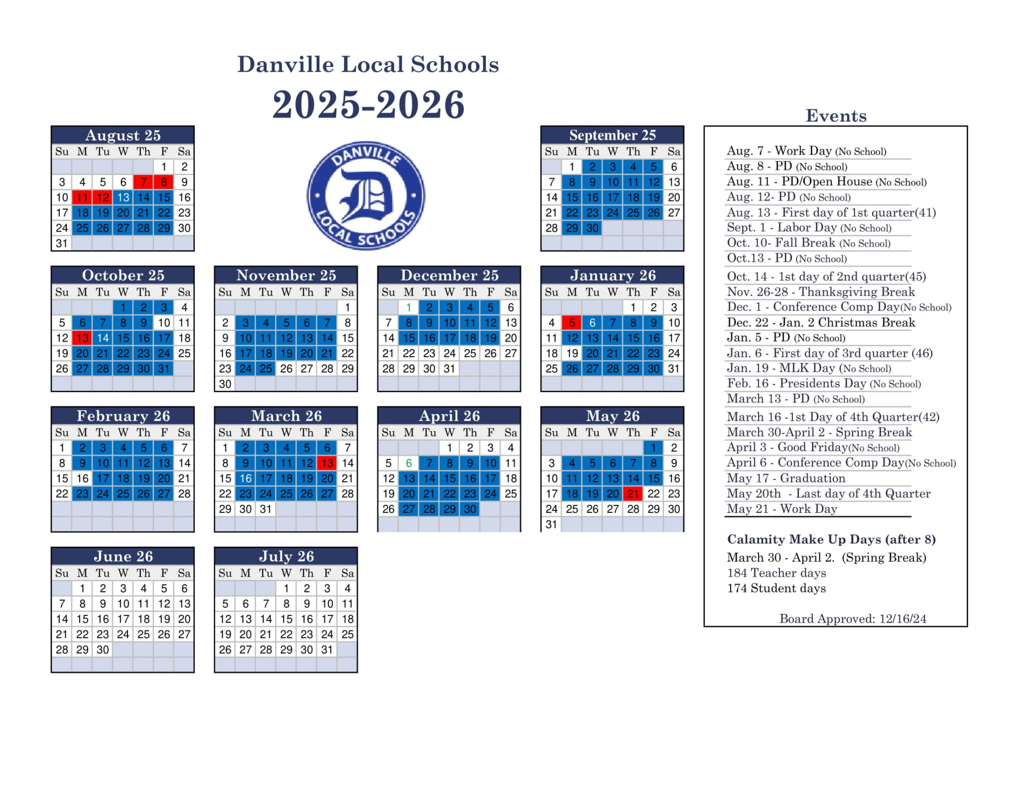 Danville Local Schools Calendar 25 26 Revised PDF EduCounty
