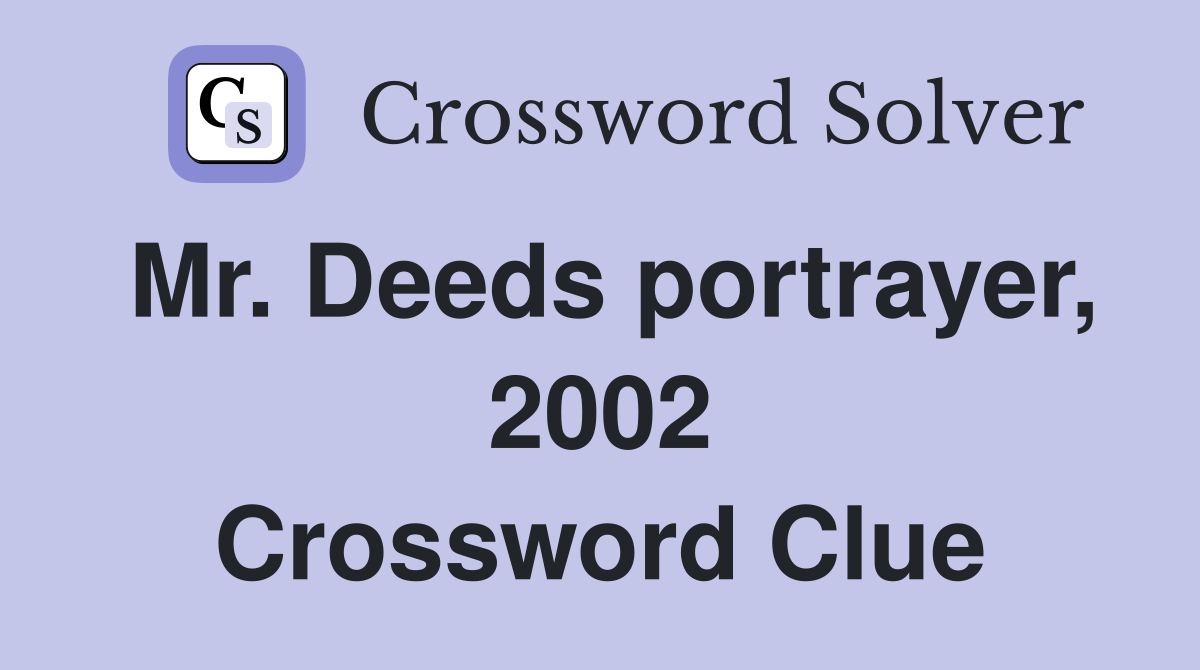 Mr Deeds portrayer 2002 Crossword Clue Answers Crossword Solver