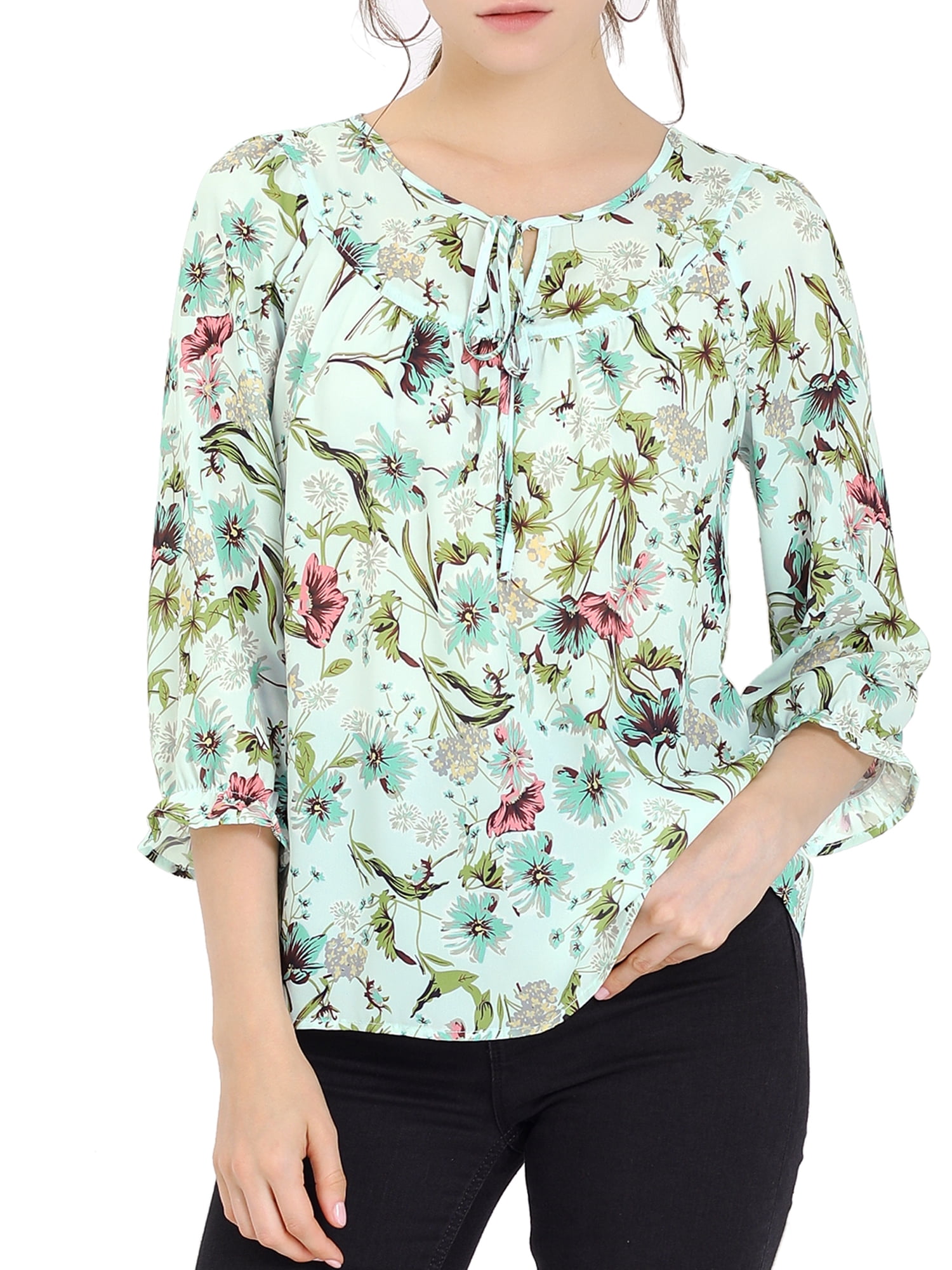 DARING DIVA Tie V Neck Boho Ruffled 3/4 Sleeve Blouse XL Green