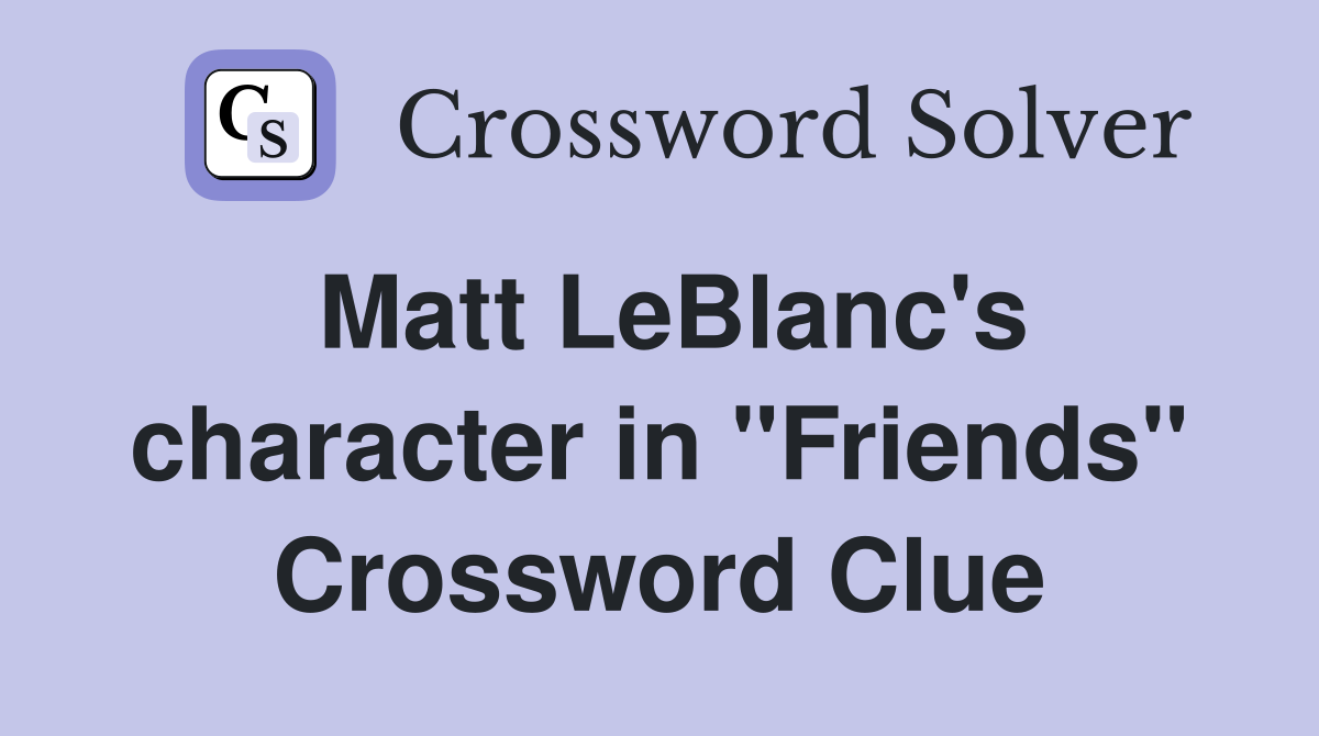 Matt LeBlanc #39 s character in quot Friends quot Crossword Clue Answers