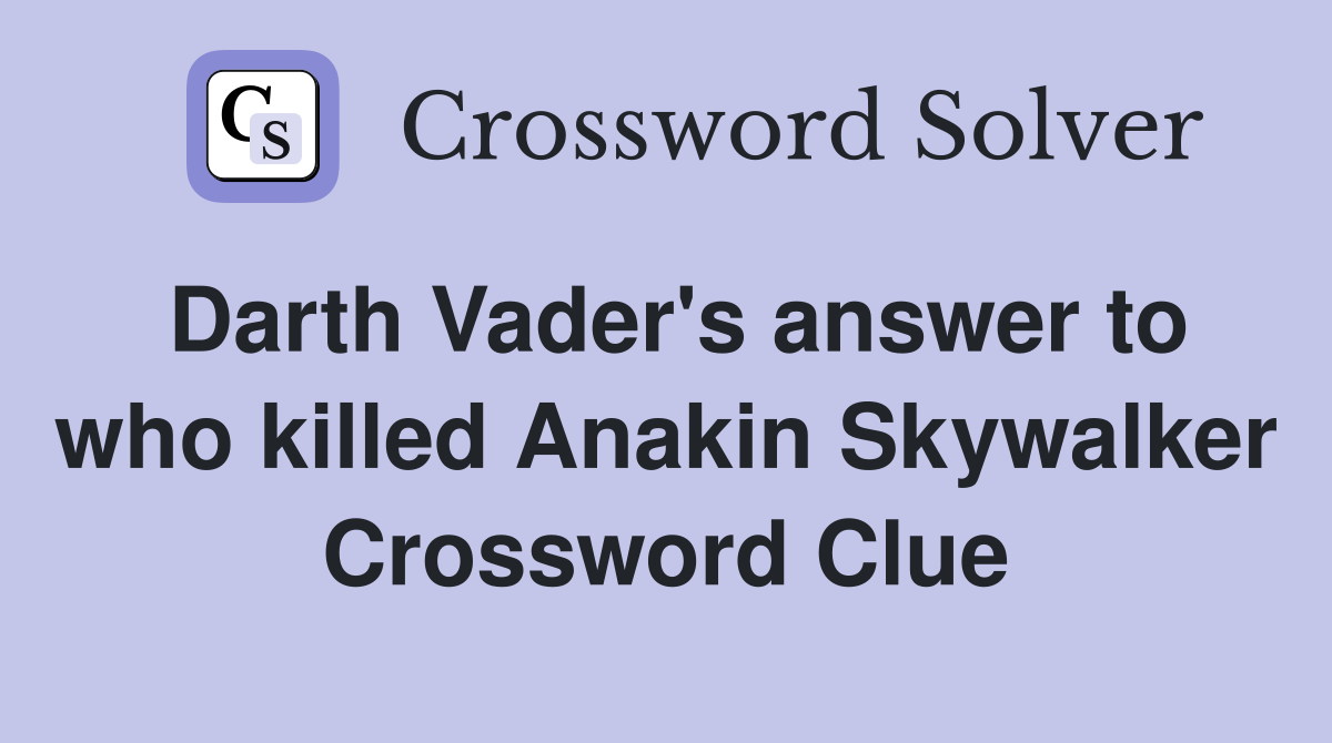 Darth Vader s answer to who killed Anakin Skywalker Crossword Clue