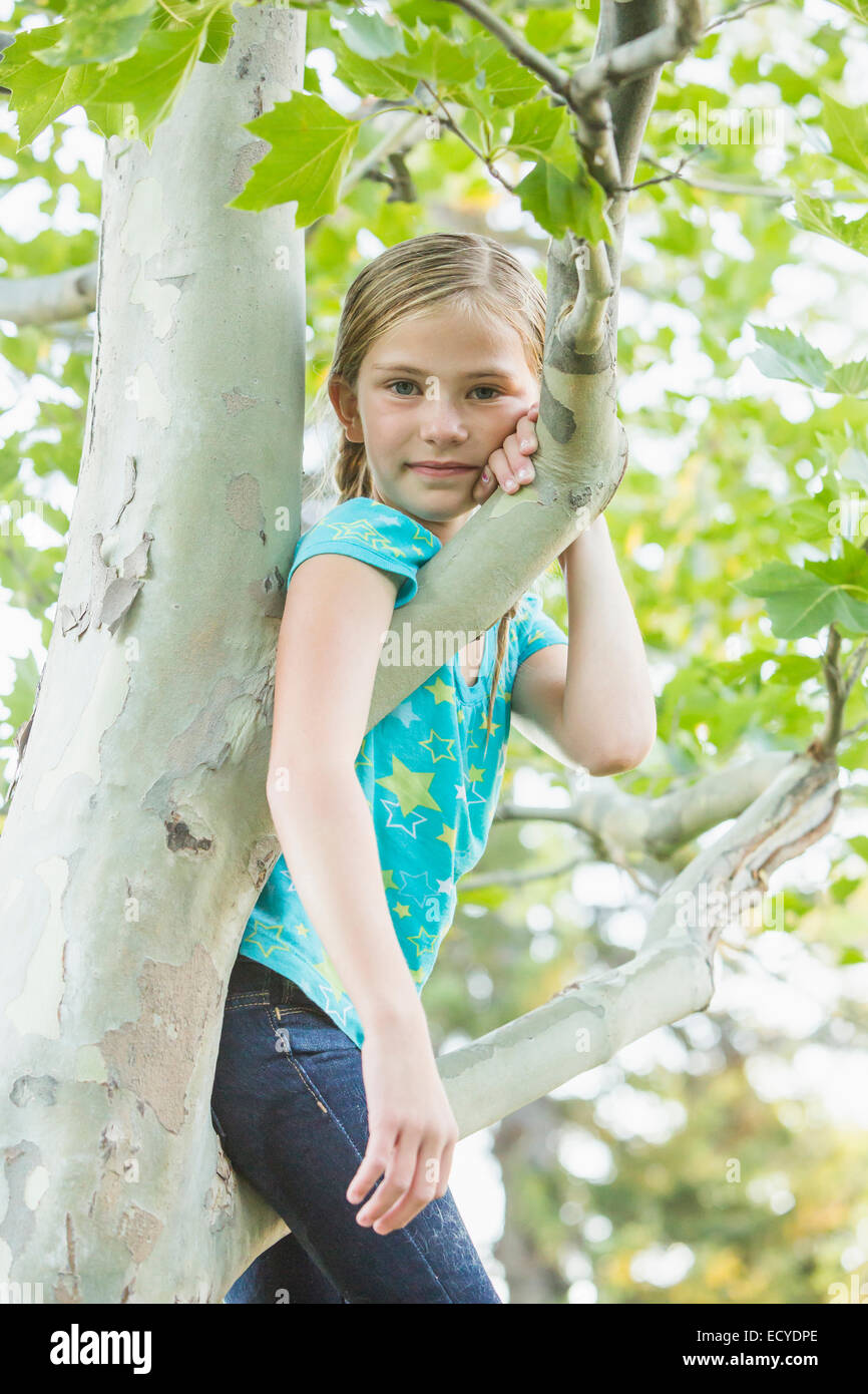 Little Girl Sitting in a Gum Tree Stock Photo Image of sitting