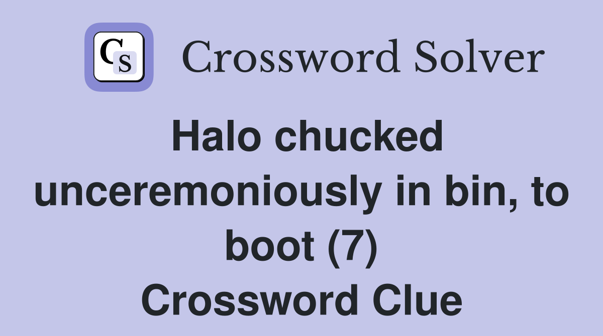 Halo chucked unceremoniously in bin to boot (7) Crossword Clue