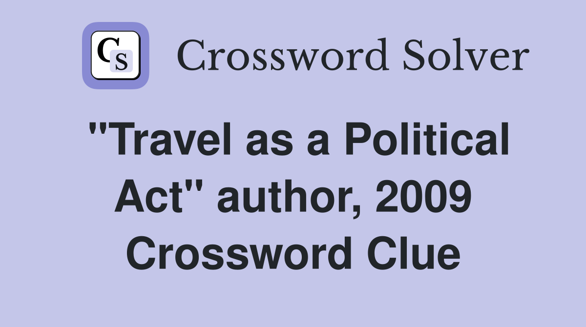 quot Travel as a Political Act quot author 2009 Crossword Clue Answers