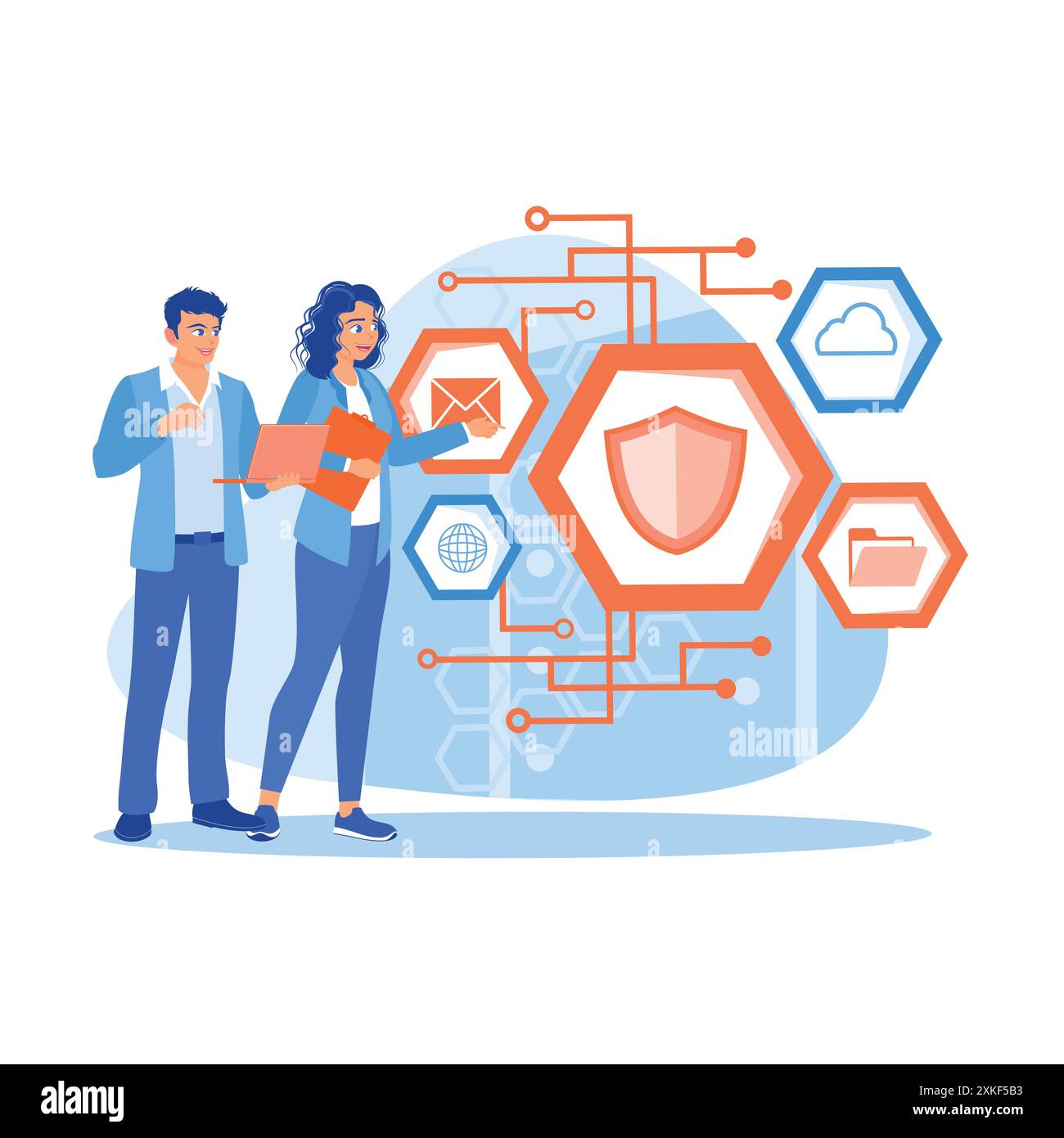 Technician Working with Laptop in Modern Data Center Stock Illustration