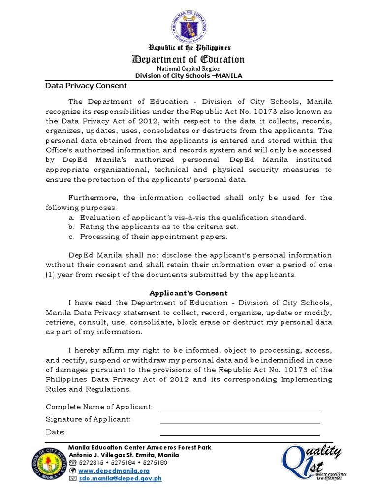 Data Privacy Consent Form PDF Consent Government