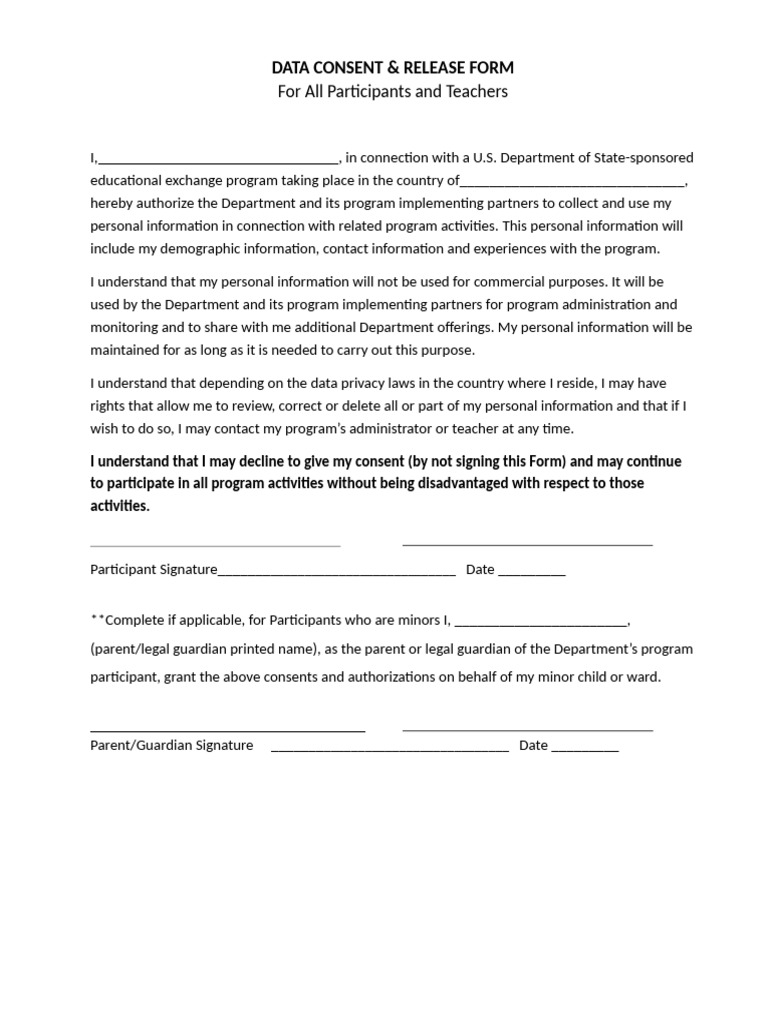 Fillable Online Data Consent Form Template Data Consent Form Template