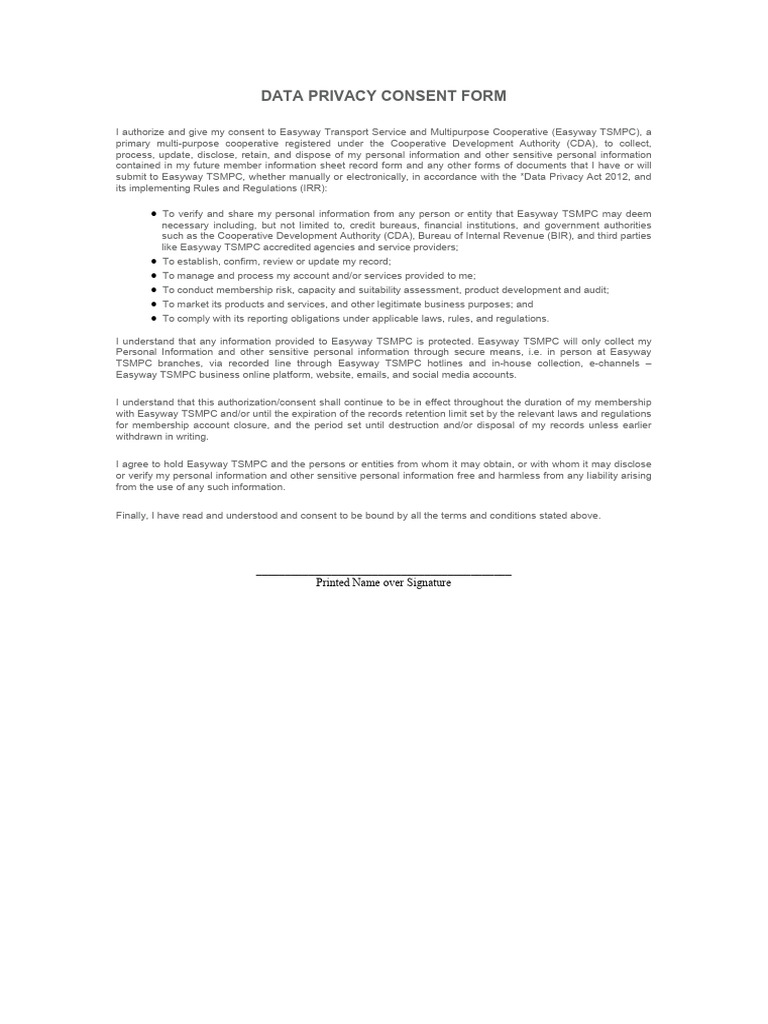 Data Privacy Consent Form PDF