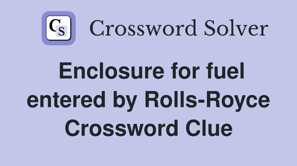 Enclosure for fuel entered by Rolls Royce Crossword Clue Answers