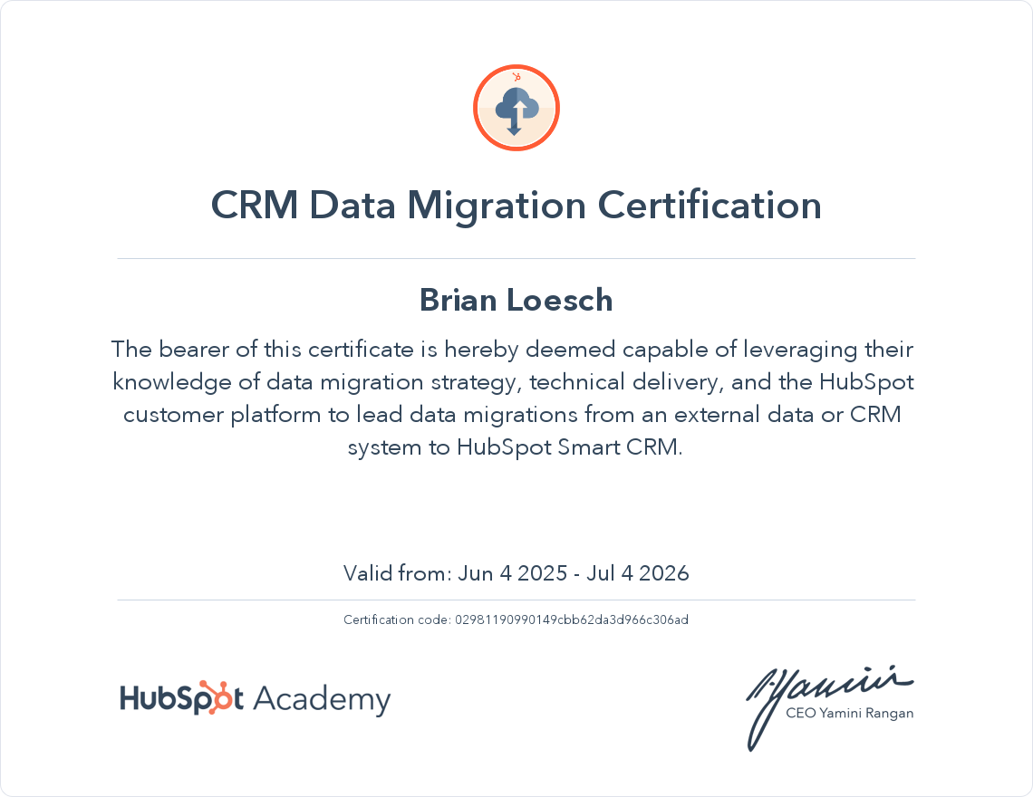 π₯ CRM DATA MIGRATION CERTIFICATION from HubSpot Check out my interview