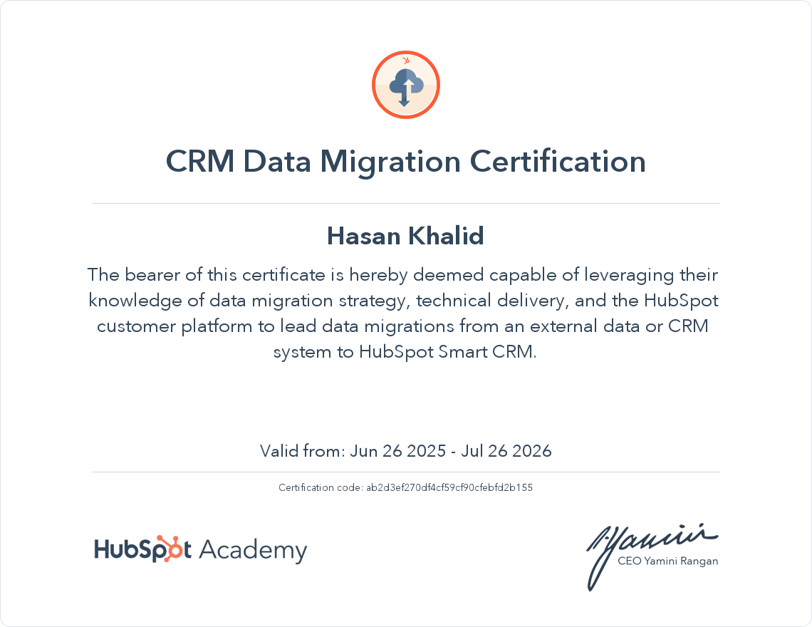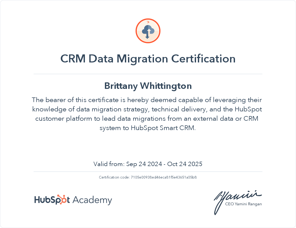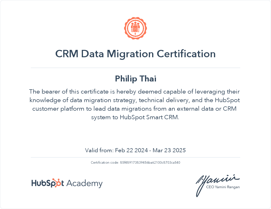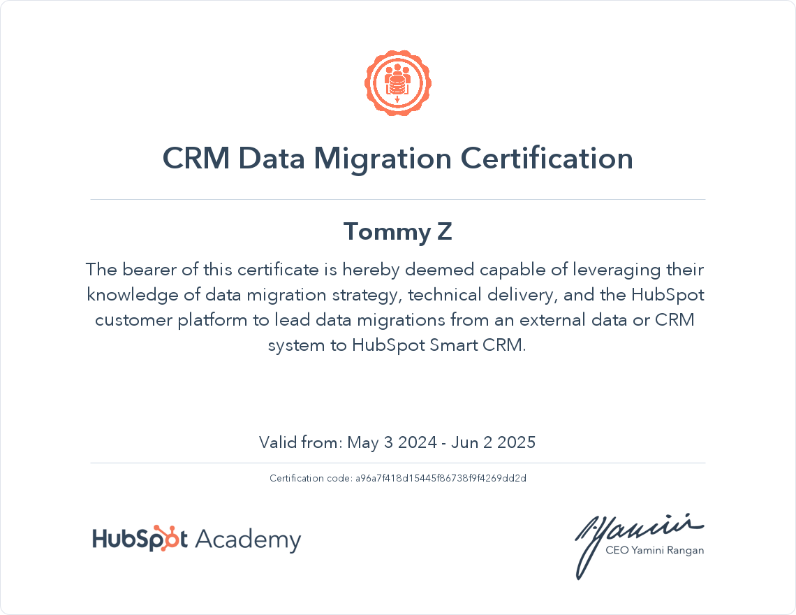 HubSpot Academy CRM Data Migration Certification Certification
