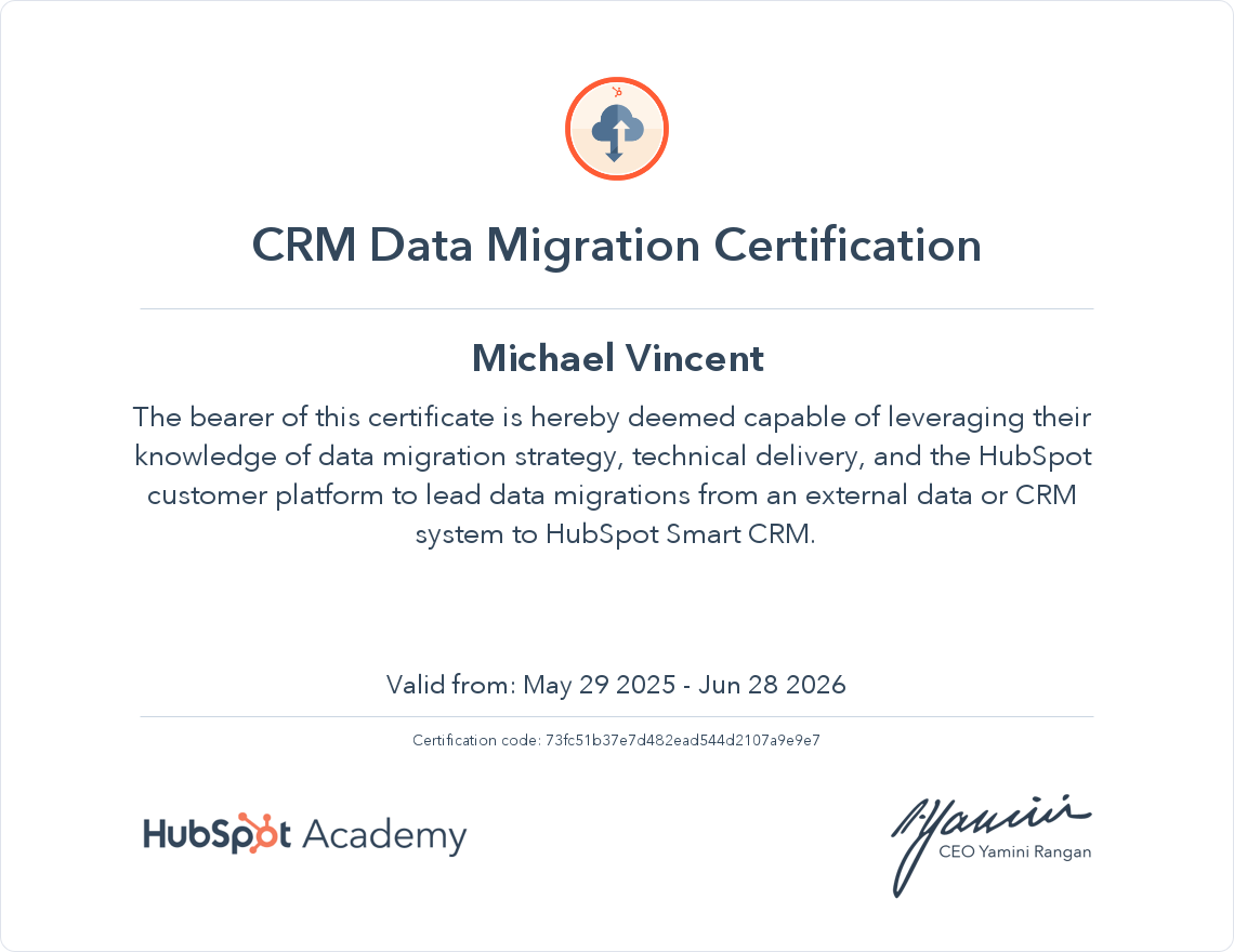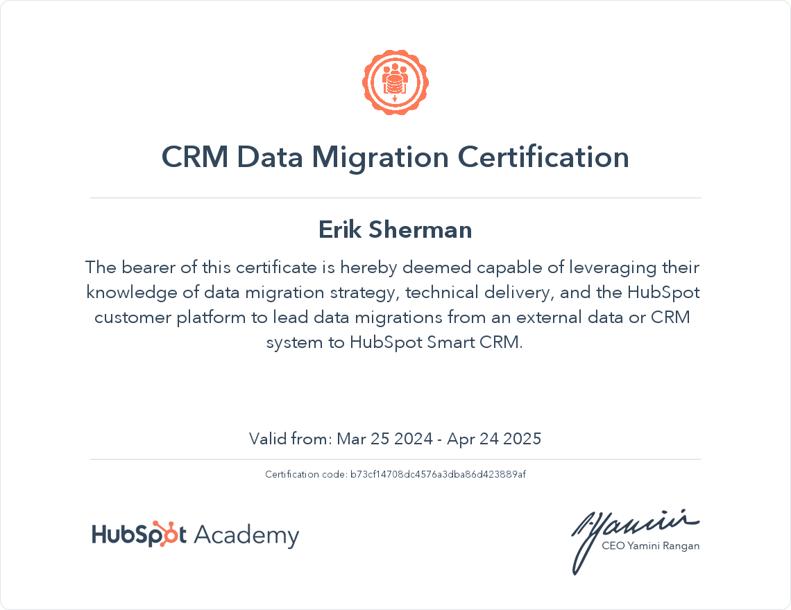 π The CRM Data Migration Certification is now live in HubSpot Academy
