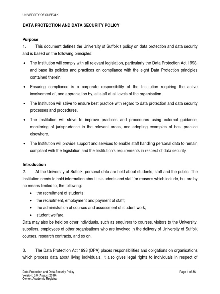 Data Protection and Data Security Policy PDF Information Privacy