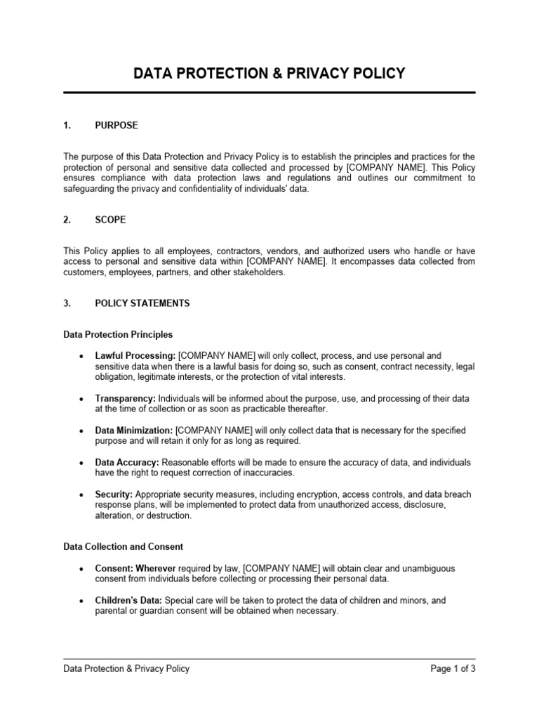 Sample Data Protection Policy Template Information Privacy