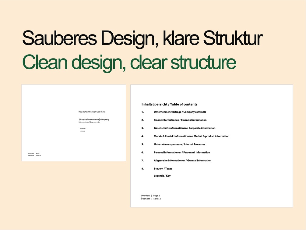 Data Room Index Template for a Data Room Index Bilingual in German and