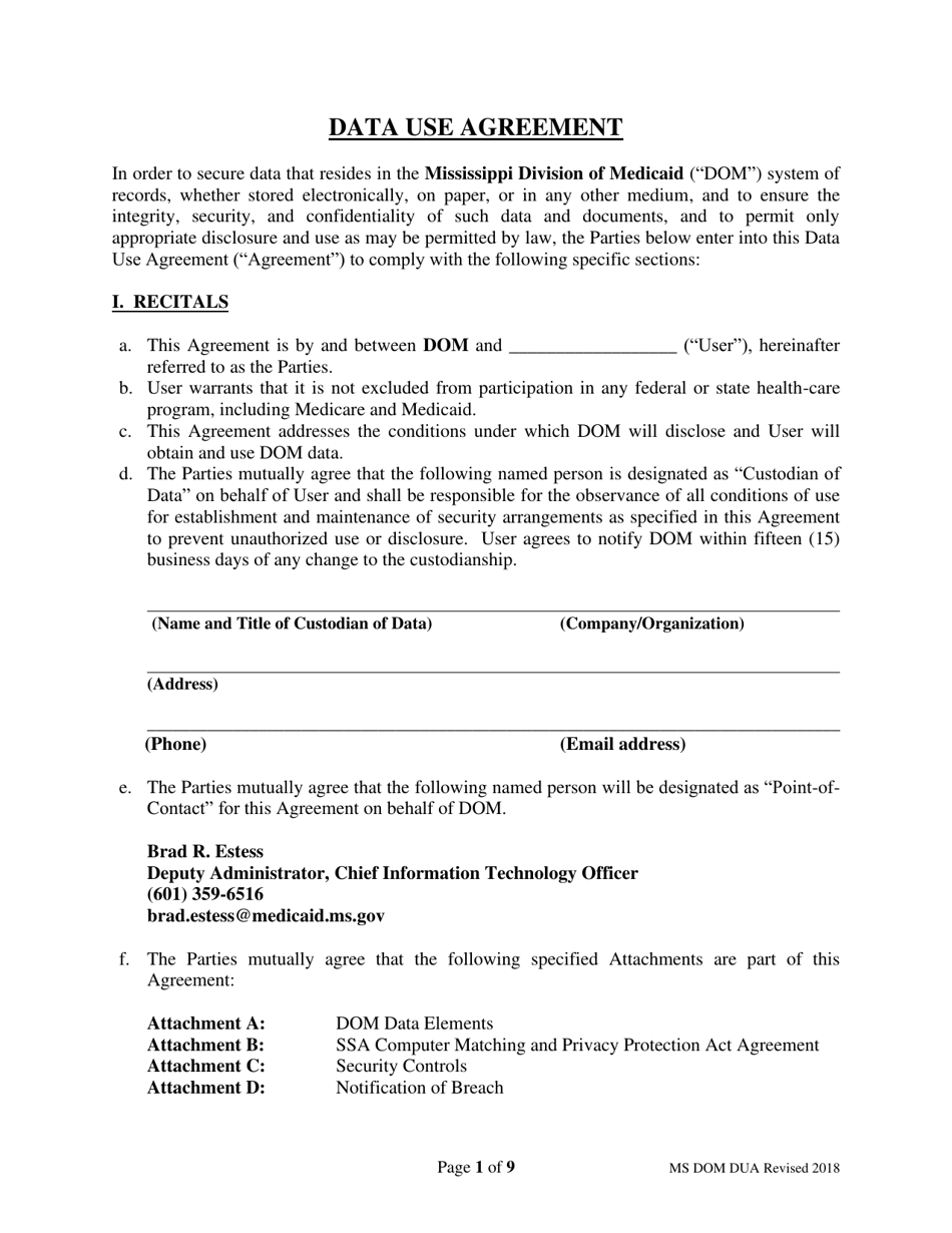 Mississippi Data Use Agreement Fill Out Sign Online and Download PDF