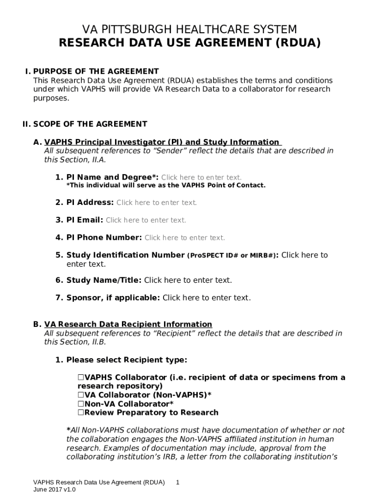research data use agreement (rdua) Veterans Affairs Doc Template