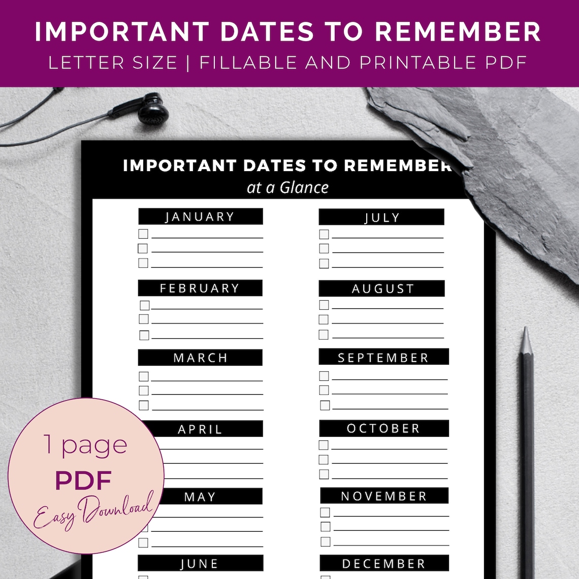 Important Dates • 1 Page • Instant Download PDF Printable Etsy
