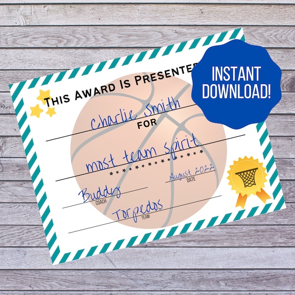 Editable Basketball Coach Gift Printable Instant Digital Download