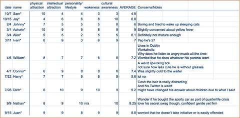 SPREADSHEET DATING How to Rank and Keep Track of Your Online Dates